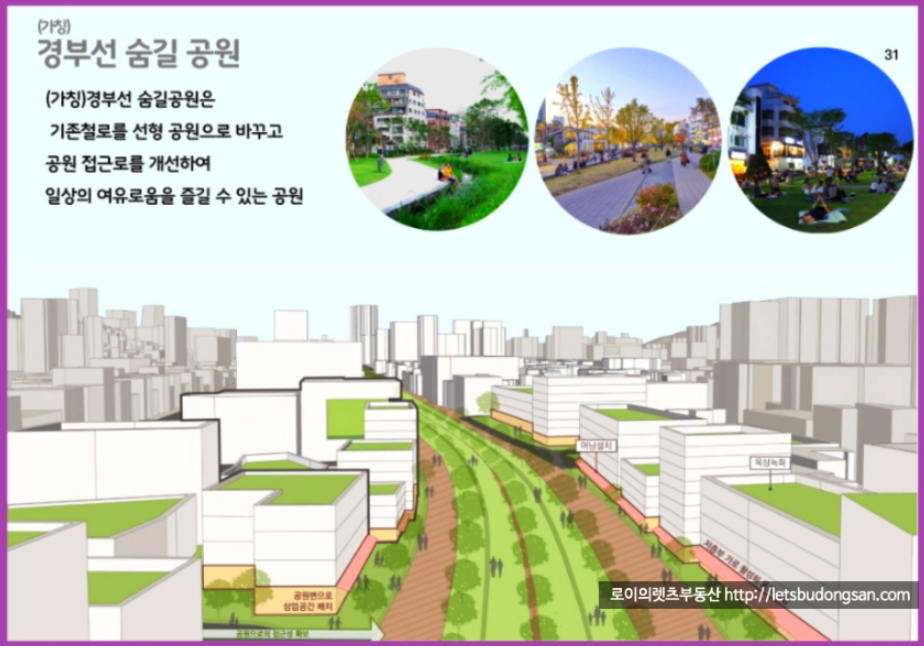 경부선 철로가 지화화가 되고 상부가 공원등으로 활용이 되면
