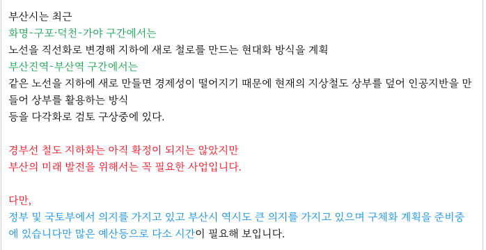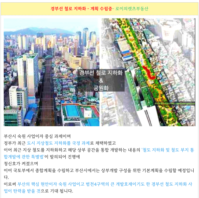 범일2구역 재개발 큰 호재가 되는 경부선 철로 지화화 부분 입니다.