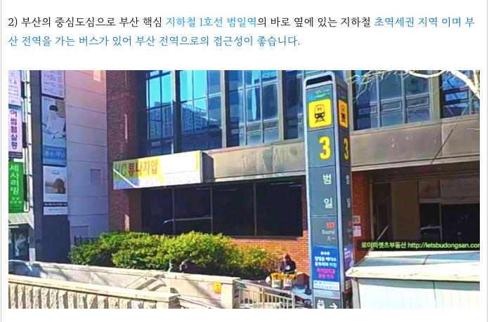 부산 지하철 1호선 범일역을 끼고 있는 초 역세권으로