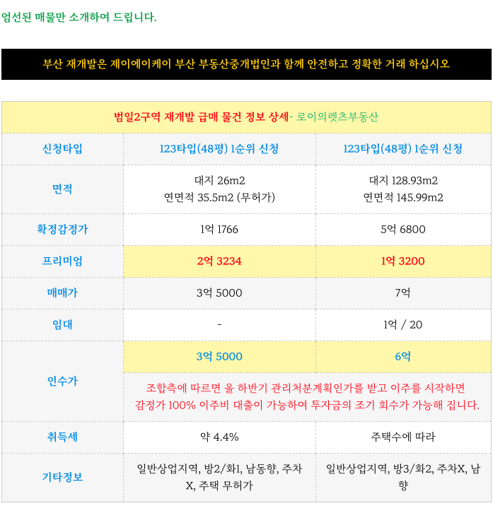 중심도심 범일2구역 재개발 123타입(구 48평 접수된 물건들 소개해 드립니다.