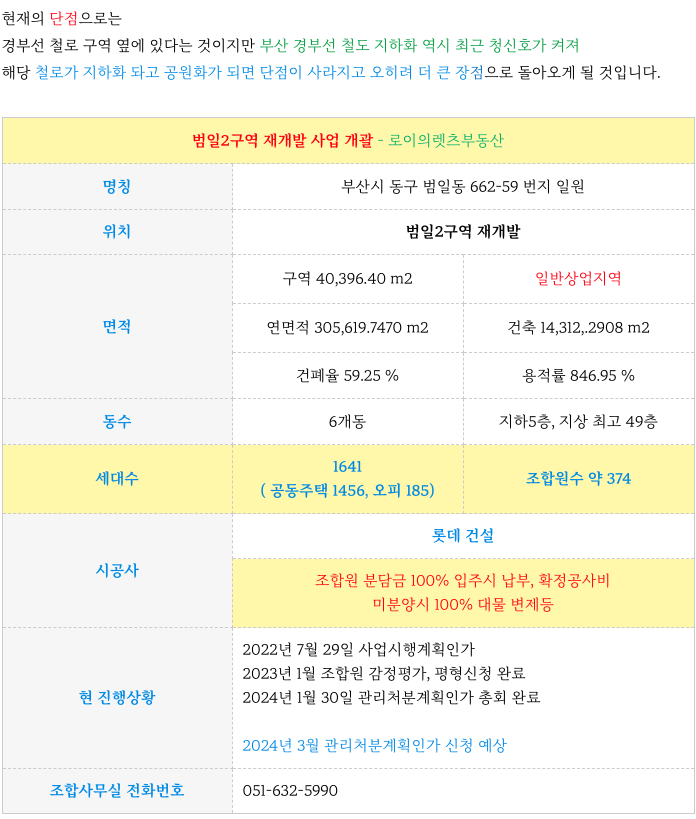 범일2구역 재개발의 간략한 특징입니다.