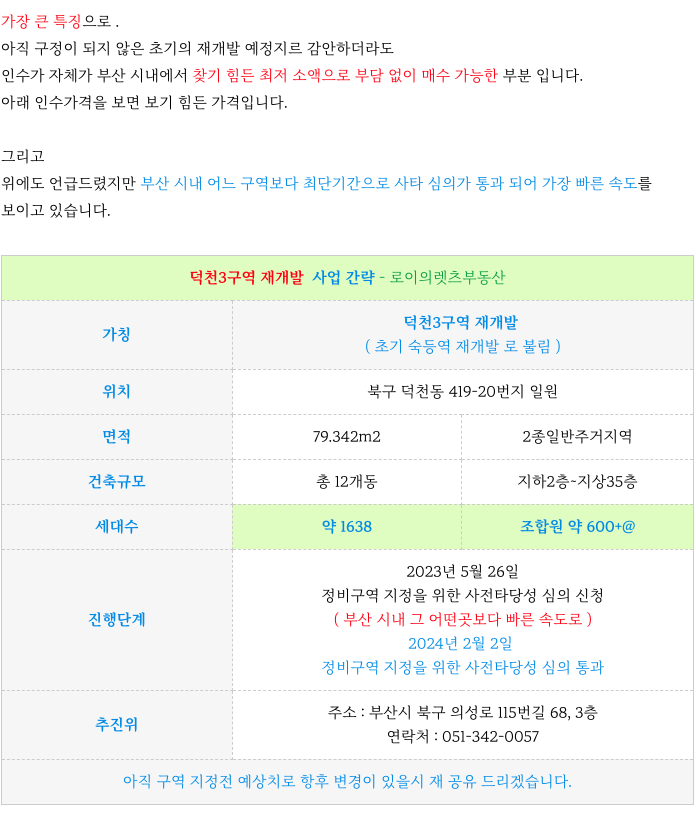 숙등역 역세권 덕천3구역 재개발 의 간략한 특징을 다시 한번 정리하여 드립니다.