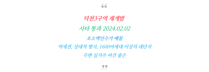 사타통과한 - 덕천3구역 재개발 초소액 인수 매물 (숙등역)