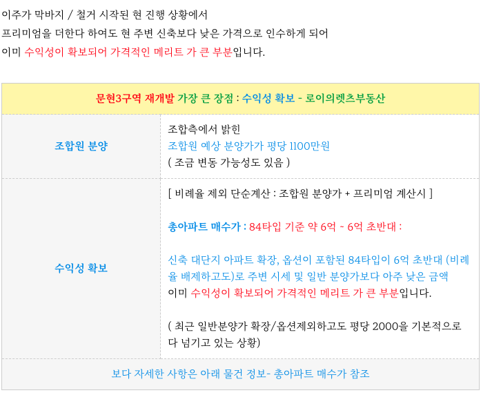 문현3구역 재개발의 무엇보다 가장 큰 장점은 수익성 보장 입니다.