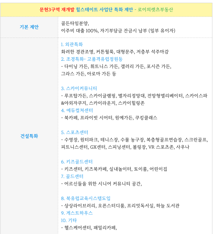 문현3구역 재개발 힐스테이트 사업단 주요 특화 제안 내용 입니다.