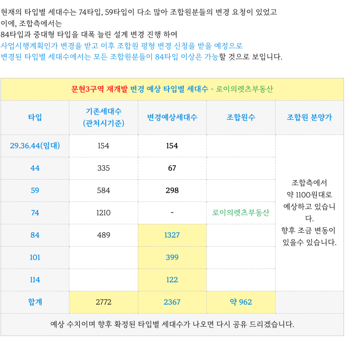 문현3구역 재개발 현재 및 변경 예상 타입별 세대수 체크해 드립니다.