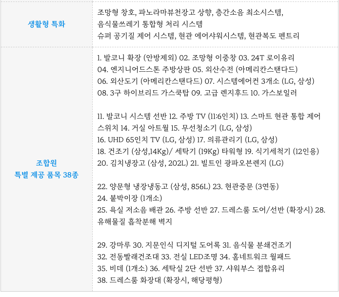 - 조합원 분들에게 지급되는 품목 역시도 고급 내장제와 우수 가전제품 으로 큰 혜택이 됩니다.