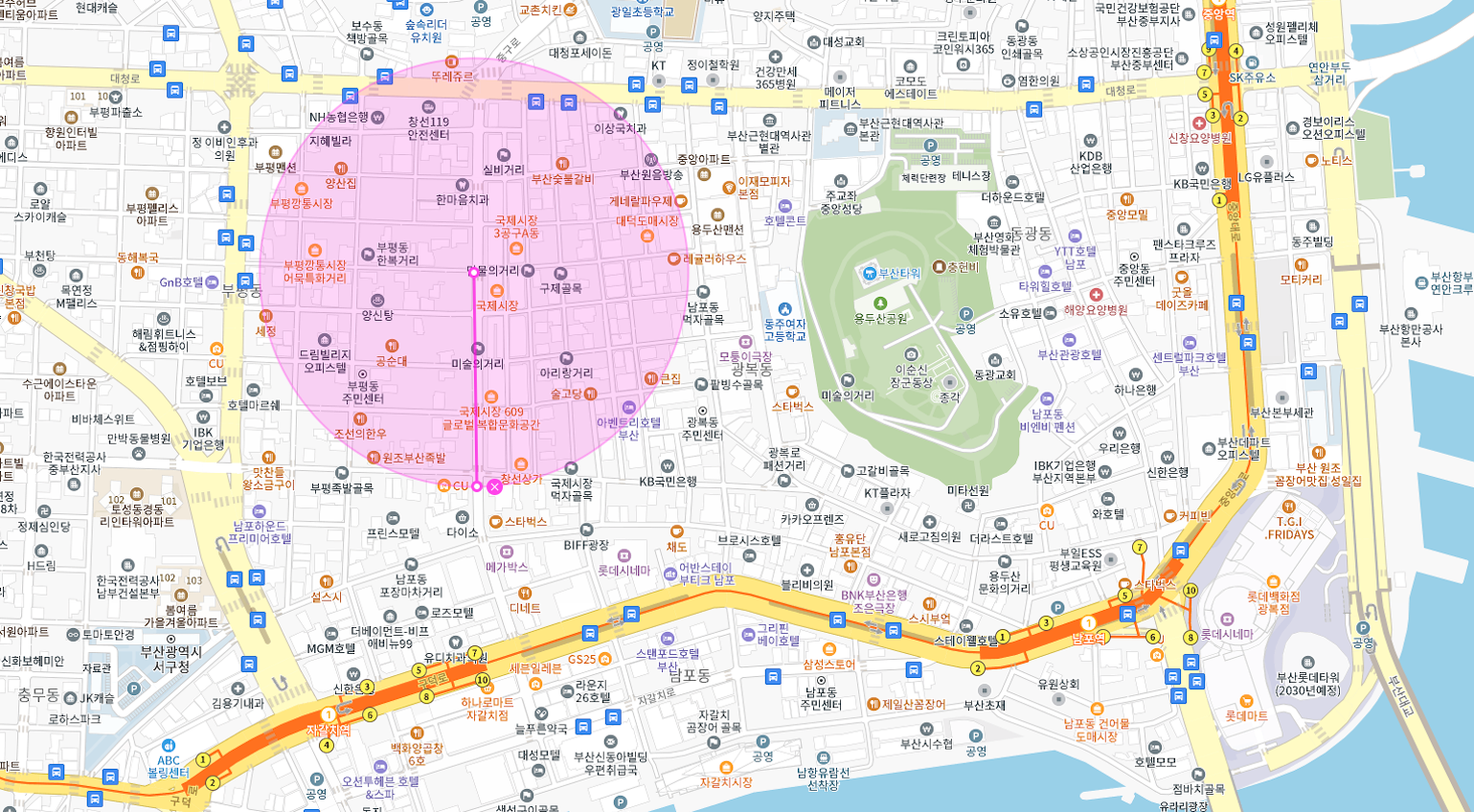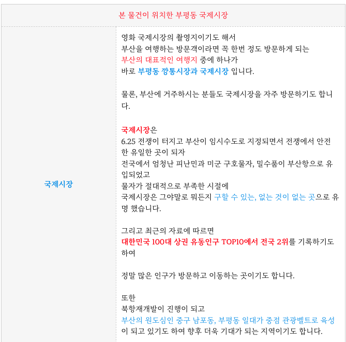부평동 깡통시장과 국제시장의 옆의 2차선 도로를 끼고 있는 상가 건물 입니다.
