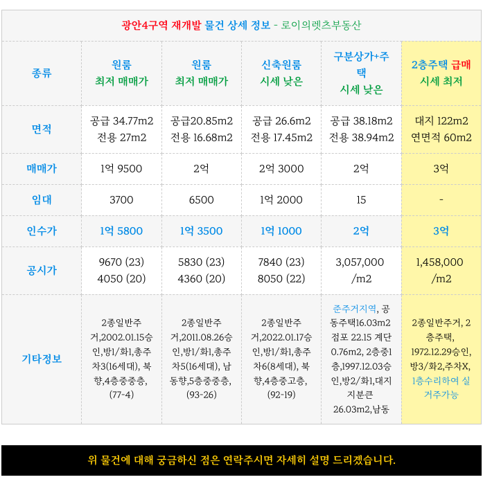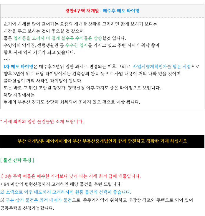 광안4구역 재개발 주택 최저 급매 물건 & 소액 인수가 매물 정보 소개해 드리겠습니다.