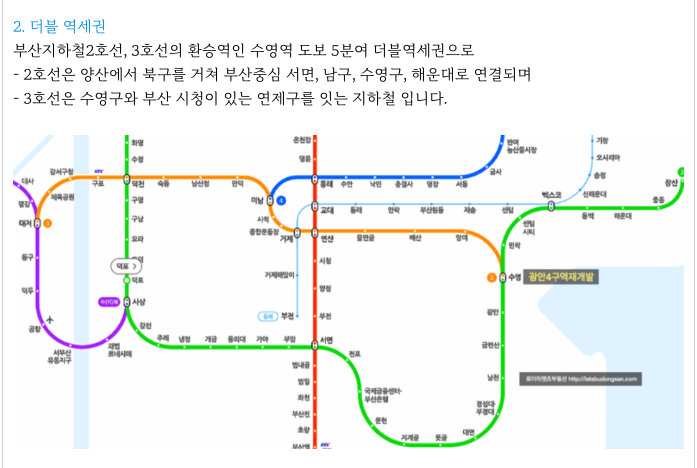 2호선, 3호선의 환승센터인 수영역 도보 3분여 역세권 으로의