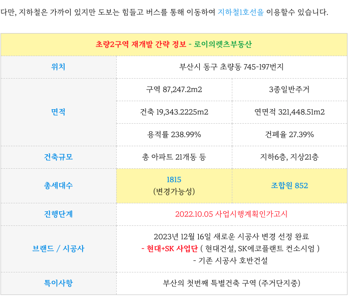 초량2구역 재개발의 주요 특징을 다시 한번 간략히 정리하여 소개 드립니다.