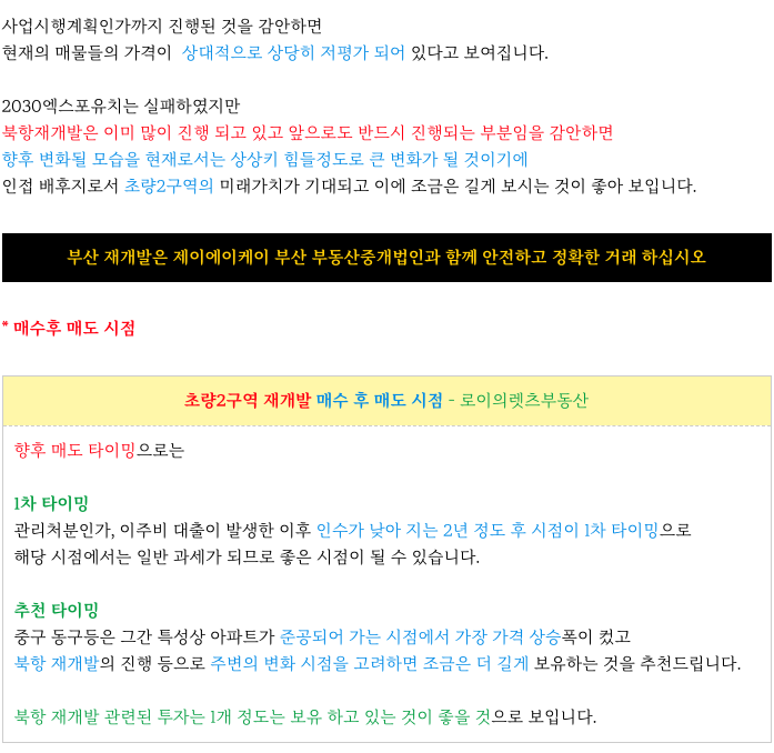 안녕하세요. 로이의렛츠부동산 ( 제이에이케이 부산 부동산중개법인 ) 입니다. 초량2구역 재개발 부산 가장...