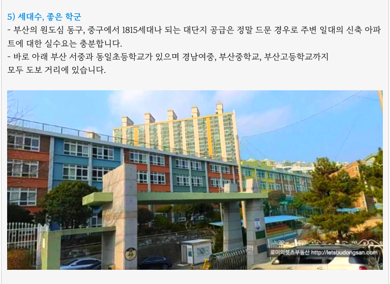 부산서중, 부산중학교, 경남여자중학교 부산고등학교 등 우수 학군이 위치해 있습니다.