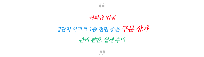 부산 구포동 위치좋은 구분 상가 매매 물건 (대단지아파트, 커피숍입점)
