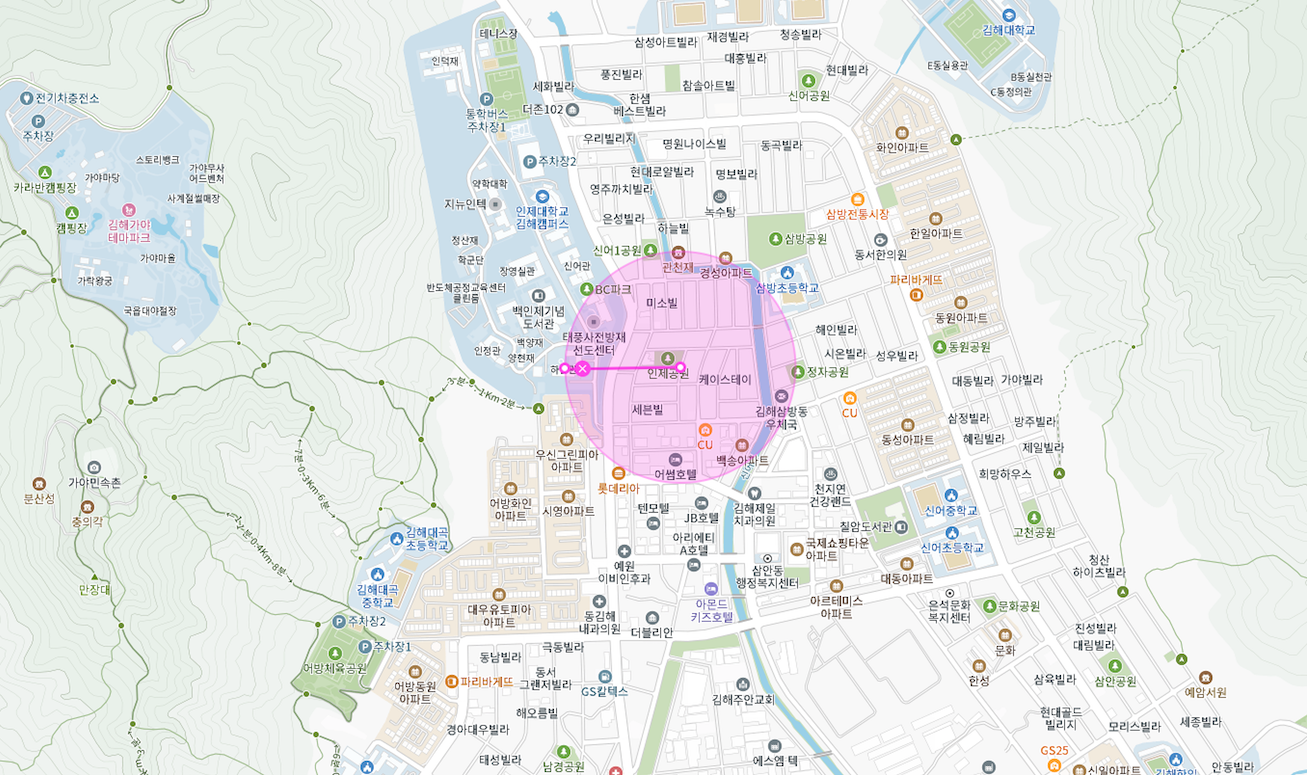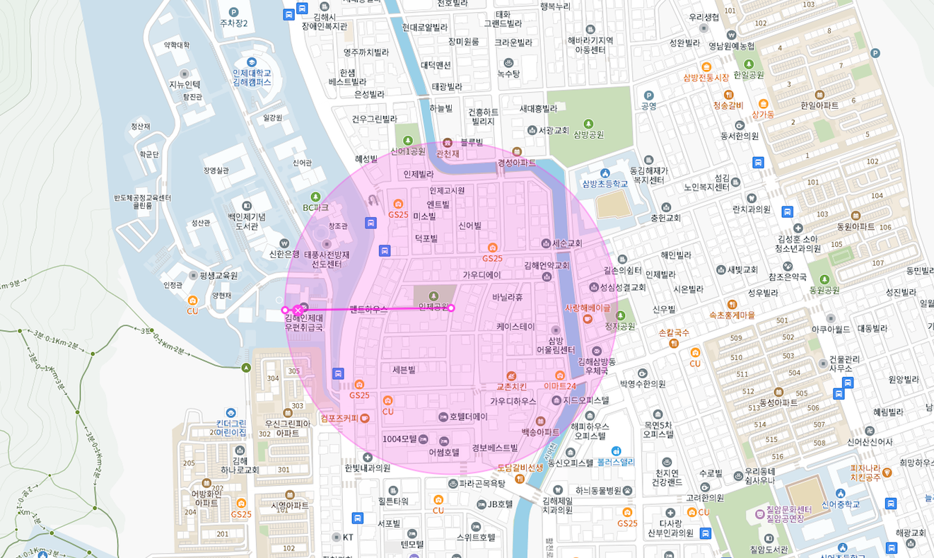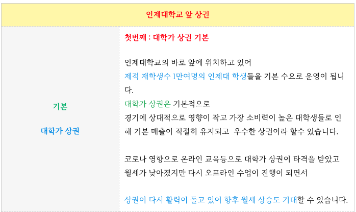 - 인제대 대학가 상권 + 바로옆으로 대단지 아파트 배후 상권