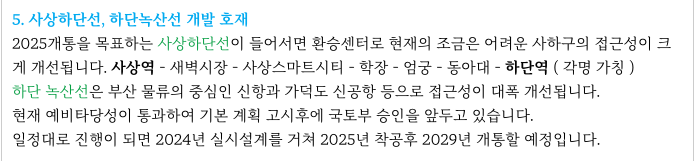 부산 진구에서 사하구의 접근성과 신항, 가덕신공항 등으로 이동 및 접근성이 크게 개선 되어 주변 일대가 크게 개선 및 변화가 기대가 되며