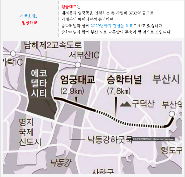 - 승학터널, 엄궁대교 : 부산원도심 접근 개선, 시외 접근 개선