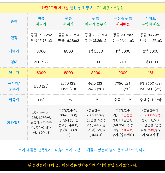 하단2구역 재개발 현 시장 최저 소액 매물 정보를 소개 하여 드리겠습니다.