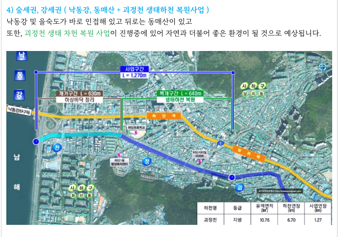 괴정천 역시 현재 생태하천으로 복원중에 있어 좋은 환경이 될것으로 보이며