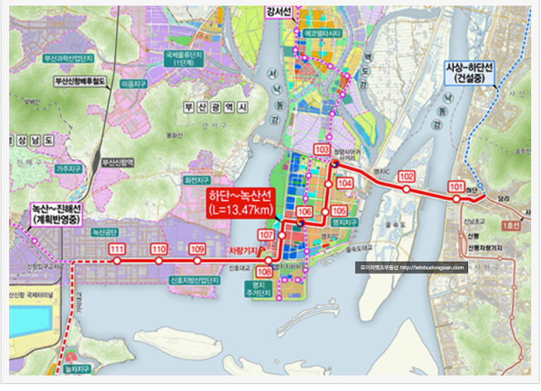 하단에서 명지와 녹산까지 이어지는 도시 철도 입니다.