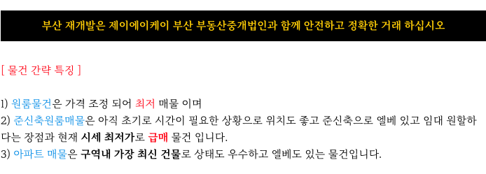 안녕하세요. 로이의렛츠부동산 입니다. 제이에이케이 부산 부동산중개법인은 언제나 한결 같은 모습으로 변...