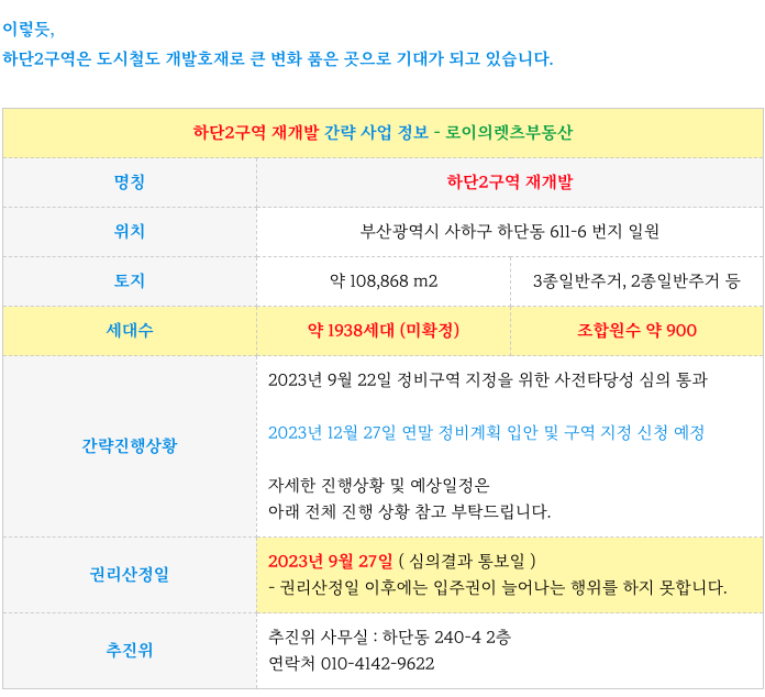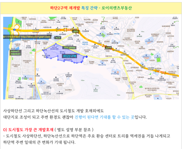 하단2구역 재개발 추가적인 간략한 특징 정리하여 소개 드립니다.