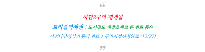 하단역 일대가 크게 변화하는 개발 호재 입니다.