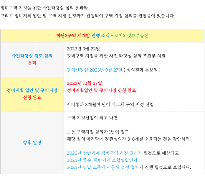하단2구역 재개발 진행상황 & 소액 매물 정보 소개 드립니다.