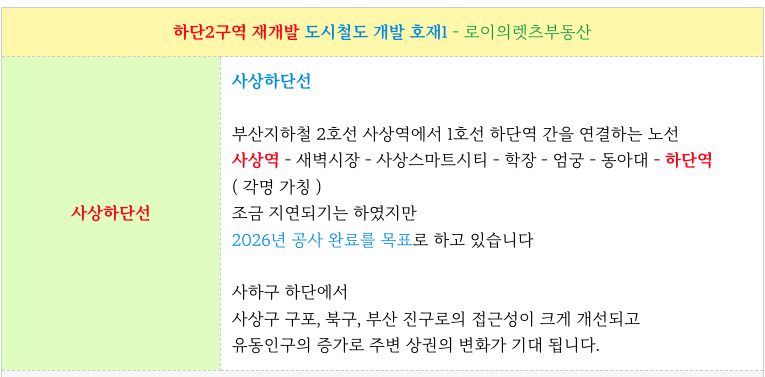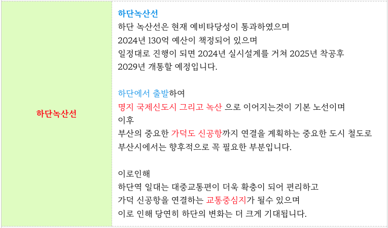 하단2구역 재개발의 가장 중요한 포인트인 도시철도 개발 들을 다시한번 설명 및 정리 드립니다.