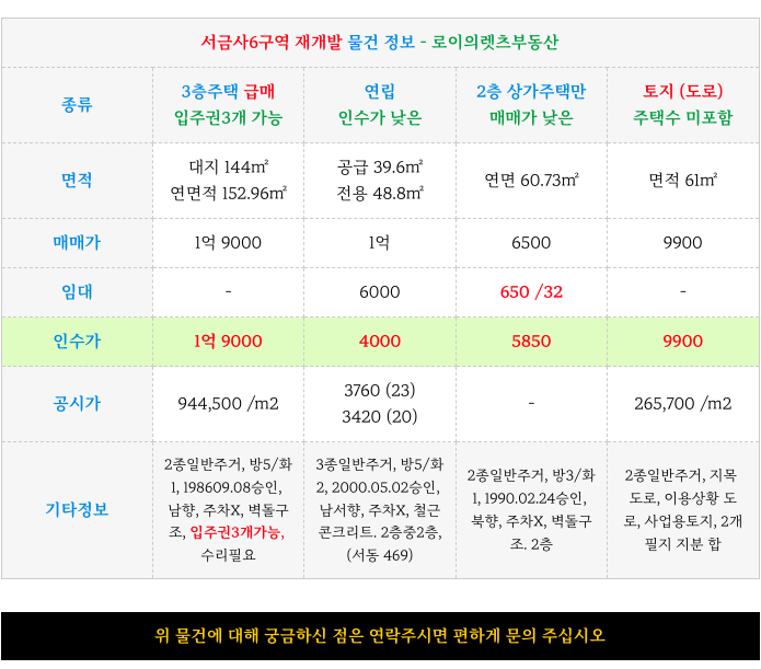 서금사7구역 재개발 급매 주택과 인수 4000부터 소액 매물
