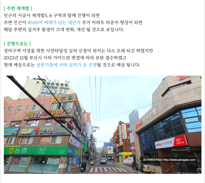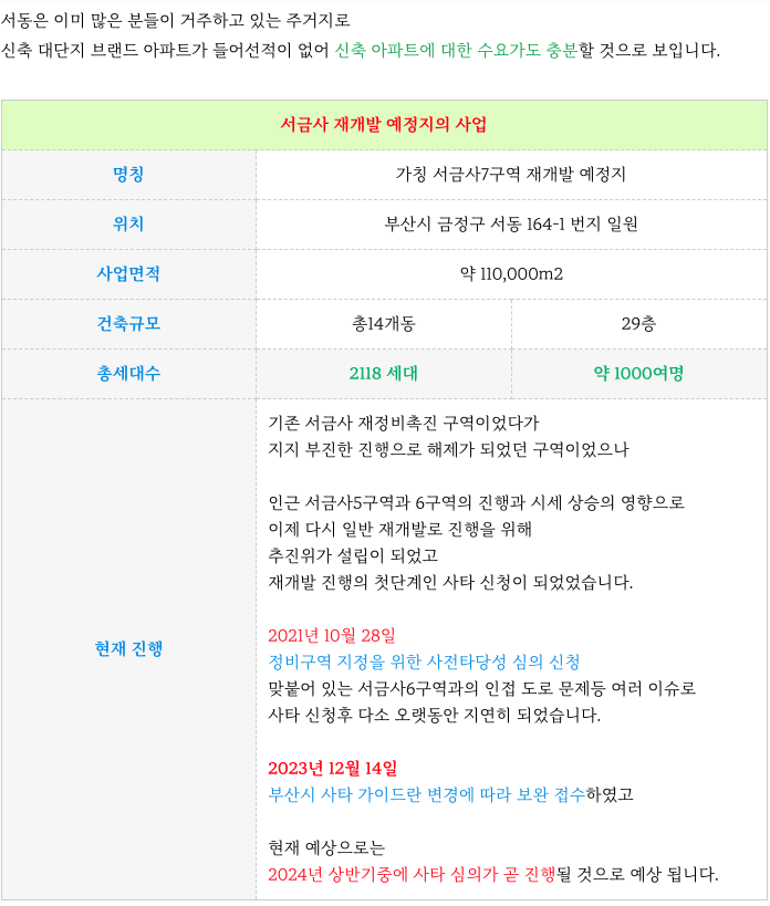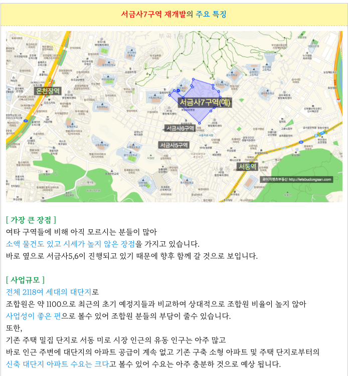 서금사7구역 재개발에 관심이 있으신 분들은 연락주시면 자세히 설명드리겠습니다.