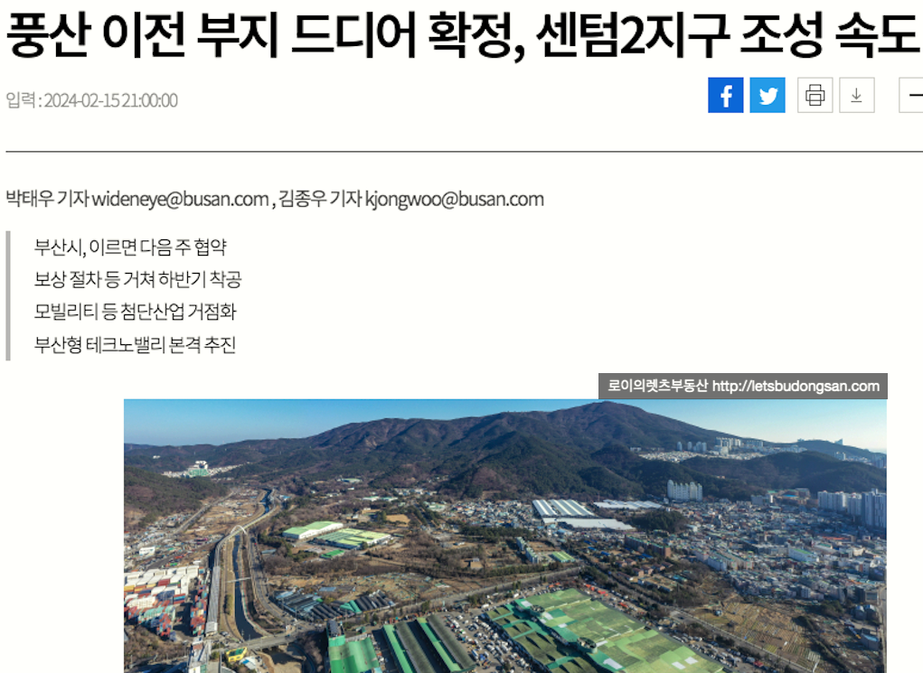 최근 풍산 이전 부지가 확정되었다는 소식으로 진행에 탄력이 붙을것으로 보이며
