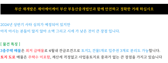 [ 부산, 양산 / 상가 / 주택 / 재개발 / 재건축 전문으로 신속하고 정직하게 거래 합니다. ]