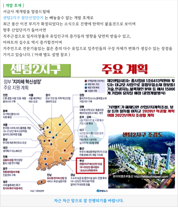 서금사 재개발을 말씀드릴때 센텀2지구 첨단산업단지 는 빼놓을수 없는 개발 호재로
