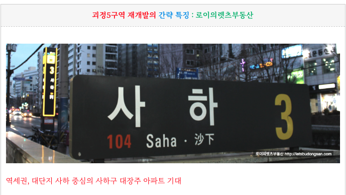 안녕하세요 로이의렛츠부동산 ( 제이이에이케이 부산 부동산 중개법인 ) 입니다. 오늘은 괴정5구역 재개발 ...