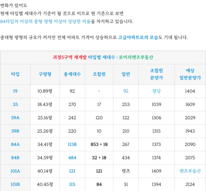 이에 따라, 타입별 세대수가 변경이 다소 있을 것으로 보이며
