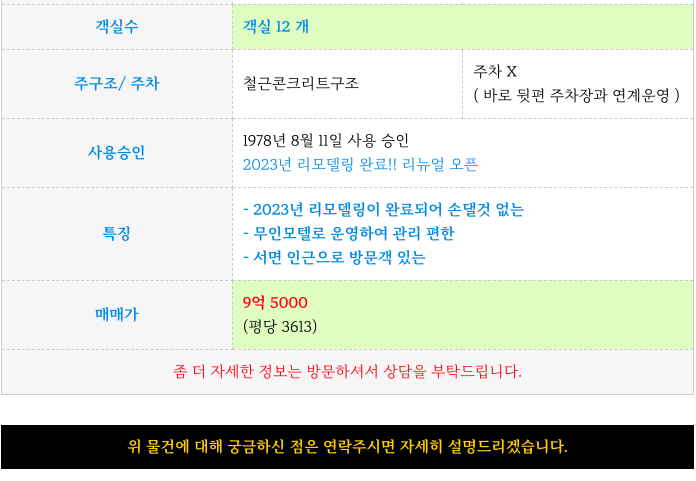 부산 범일동 올 수리된 무인 모텔 호텔 꼬마 건물 빌딩 매매
