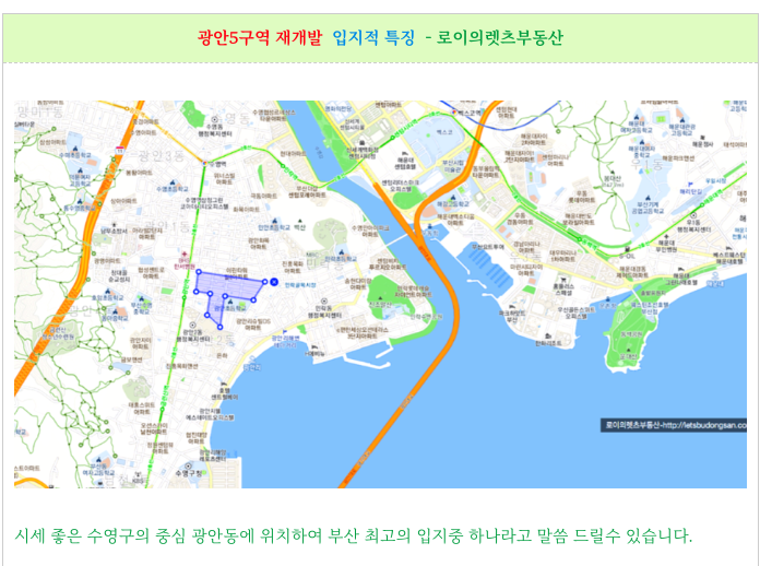 광안5구역 재개발 입지적 특징을 전반 다시 간략 정리하여 소개해 드립니다.