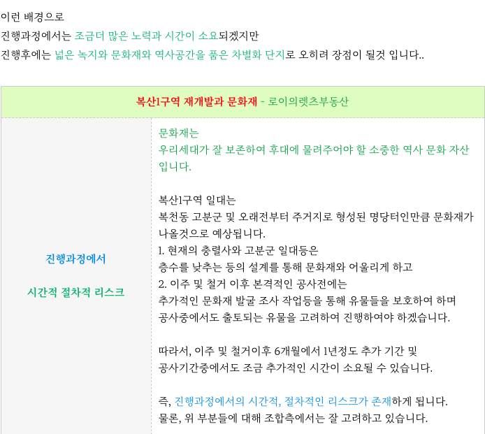 복산1구역 재개발의 문화재와 관련된 부분을 정리해 드립니다.
