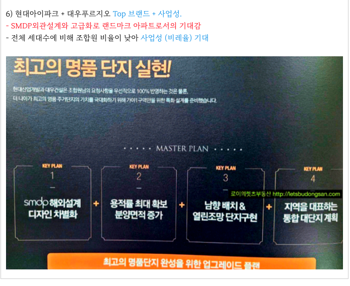 시공사 측에서는 SMDP 외관특화 / 고급화 / 대형평형세대수추가 등의 특화설계를 제시하였고