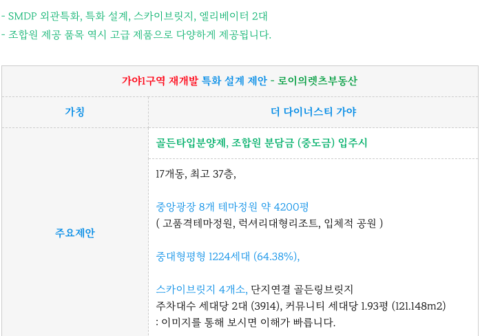 가야1구역 재개발 시공사 특화 제안 내용은 부분 입니다.