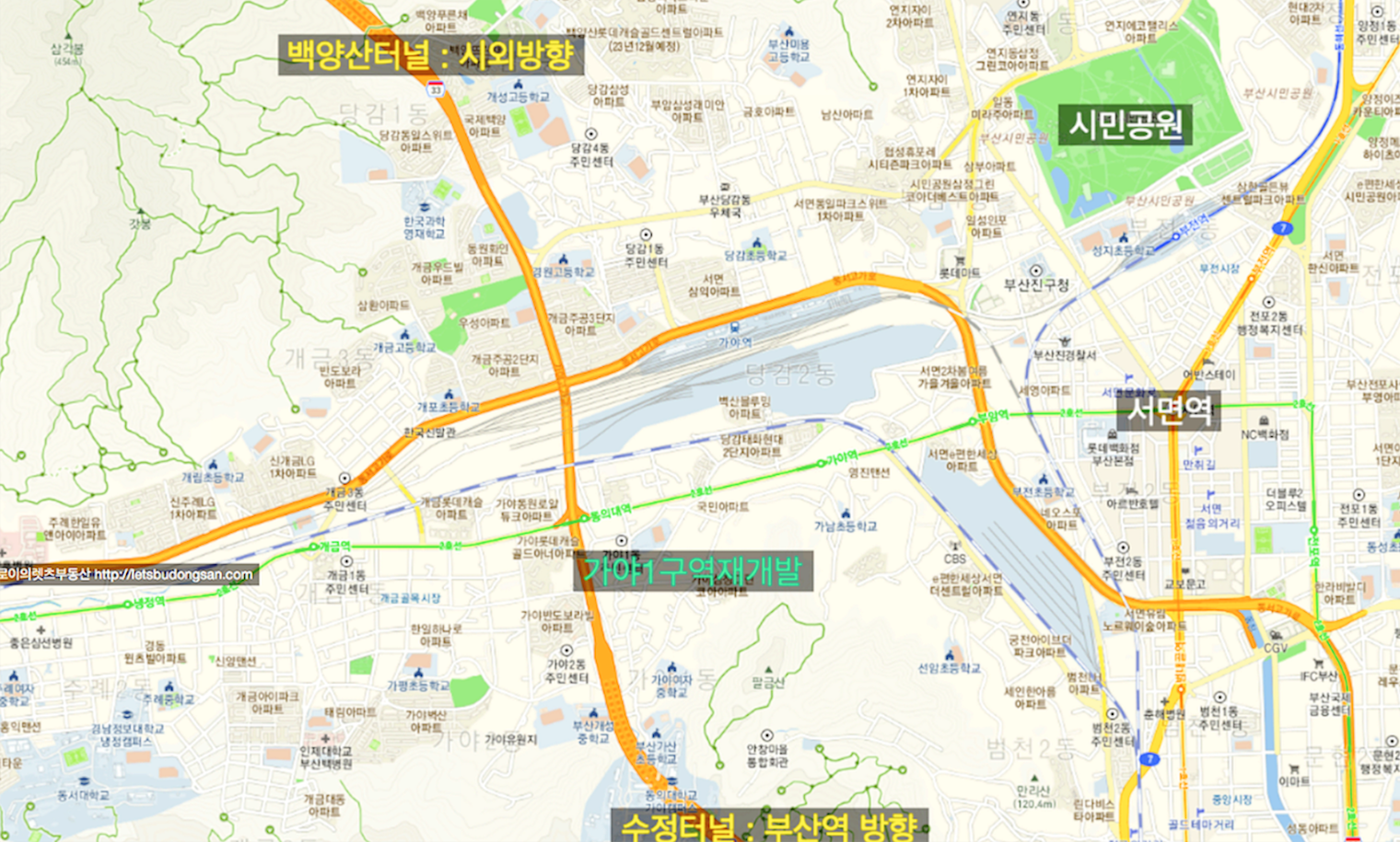 - 부산중심도심, 수정터널, 백양산터널 시내외 이동 교통환경 좋은