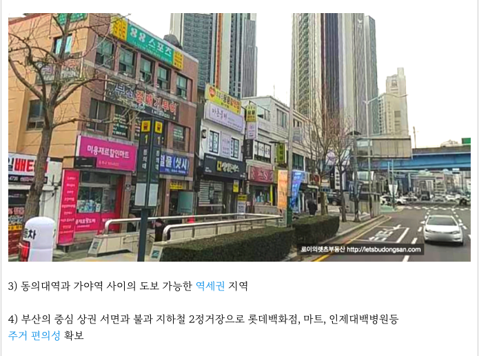 부산 중심도심 서면으로 부터 지하철 2개 정거장으로 인접해 있으며