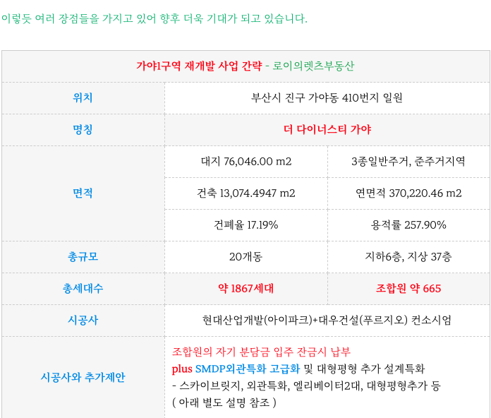 가야1구역 재개발 전반적인 특징을 다시 한번 정리하였습니다.