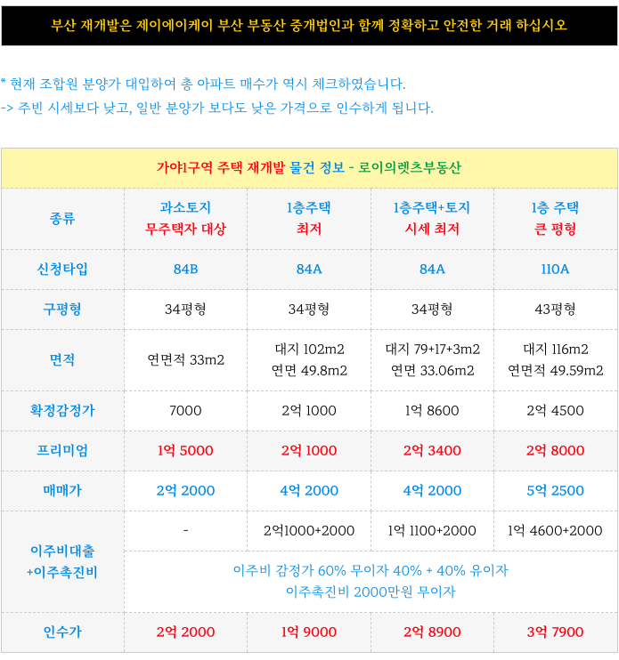 가야1구역 재개발 현 타입별 각 매물들 소개해 드리겠습니다.