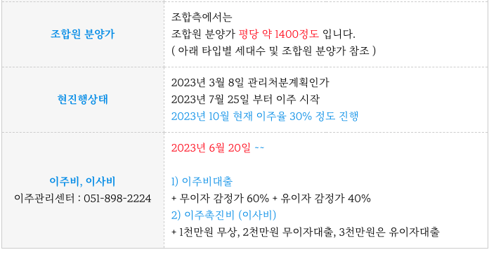 조원분들은 자기분담금은 전부를 입주시 납부하는 것으로 되어 조합원 분들이 부담이 작습니다.
