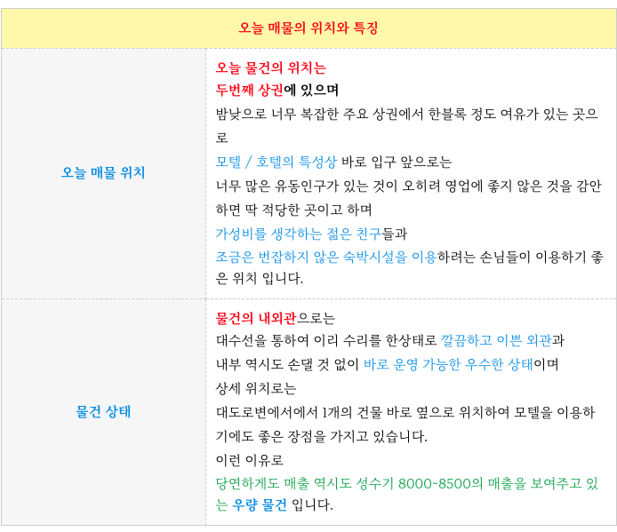 - 대수선 등을 통해 건물 상태 양호 및 내부 시설 역시 우수 : 바로 영업 가능