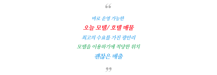 부산 최고의 상권 광안리 인근 이쁜 모텔 호텔 건물 빌딩 매매 매물 소개해 드립니다.