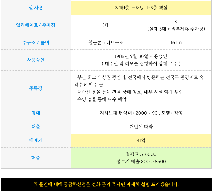 부산 광안리 바닷가 인근 매출 괜찮은 호텔 / 모텔 상가 건물 빌딩 매매