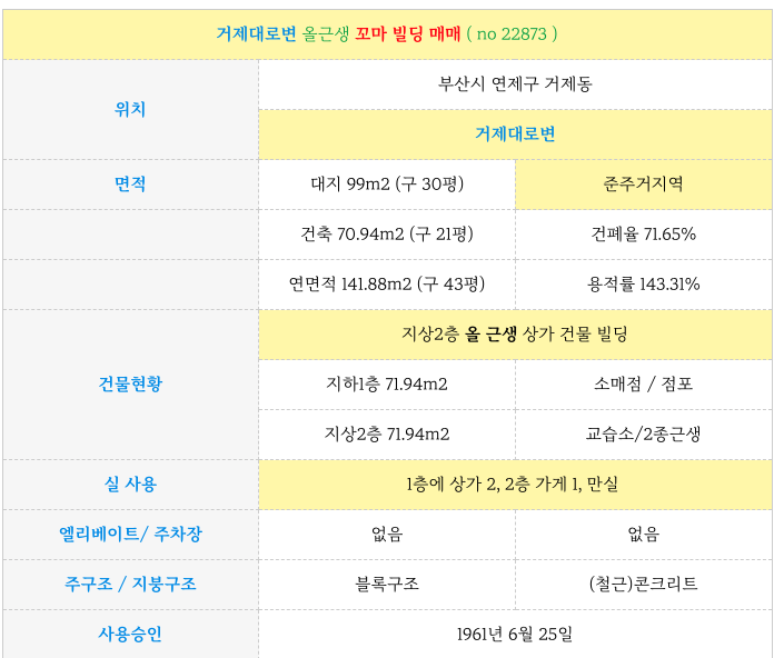 거제동 거제대로 올근생 2층 꼬마 빌딩 매매